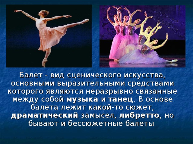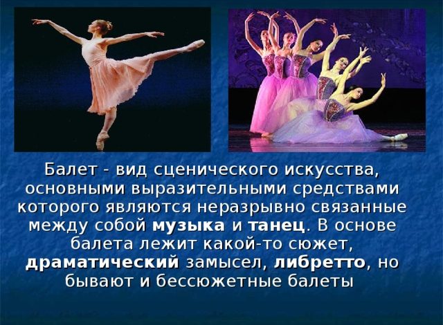- Балет – это искусство, соединяющее музыку, движение и драму для создания уникального визуального спектакля.