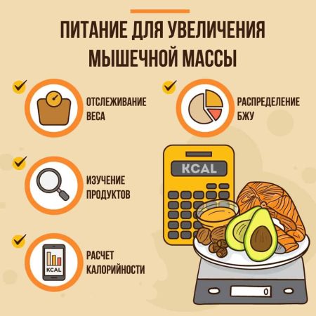 Для набора мышечной массы необходимо правильно организовать свой рацион. Первое правило – увеличение калорийности питания. Чтобы расти, мышцам нужно «строительный материал» – белки. Основными источниками белка являются мясо, рыба, яйца, молочные продукты. Также важно употреблять достаточное количество углеводов, которые являются источником энергии для тренировок.